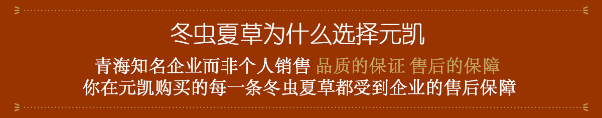 公司專業(yè)致力于青藏高原野生冬蟲夏草銷售、采收、精選包裝和現(xiàn)代化生產(chǎn)、研發(fā)等,并且在青海玉樹西藏那曲設(shè)立了采購站,專門采購地道的野生冬蟲夏草,充分保證了產(chǎn)品的品質(zhì)。元凱長期向國內(nèi)眾多著名藥材經(jīng)銷商、港澳臺以及東南亞中藥材采購商供應(yīng)冬蟲夏草,多次被省、市、縣授予多種榮譽(yù)稱號“青海省知名商標(biāo)”、“青海省誠信單位”、“青海省名優(yōu)企業(yè)”、“守合同重信用企業(yè)”等。